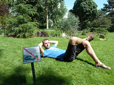 10- يبدو أن هذه الحديقة تمنع نوم الأشخاص فيها وبالفعل وضعت لافتة تحذيرية للأشخص لكن صديقنا هذا قرر السخرية من هذا الإرشاد وصور نفسه وهو يجلس نفس الجلسة التي منعتها إدارة الحديقة.